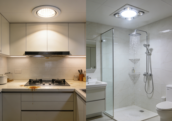 一、為什么防潮防油是廚房衛(wèi)生間燈飾的命脈?