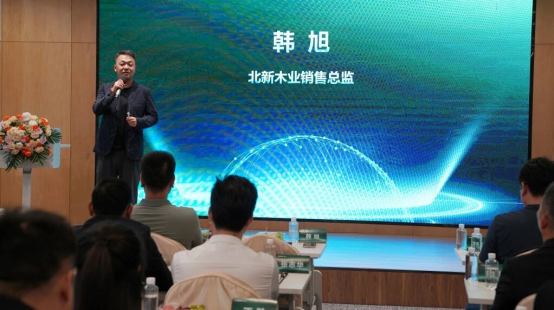 北新木業(yè)銷售總監(jiān)韓旭先生在峰會上發(fā)表講話,高度肯定此次聯(lián)名推新的重要意義。并指出,這次合作不僅是北新集團布局高端綠色板材市場的關鍵實踐,更通過央企私企協(xié)同為行業(yè)樹立了“資源共享、優(yōu)勢互補”的合作標桿,對推動建材產(chǎn)業(yè)升級具有重要示范作用。