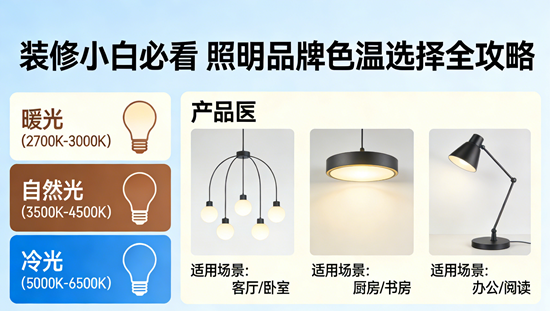 您當(dāng)前位置:良品樂購 >> 中國十大照明品牌 >> 照明資訊 >>裝修小白必看:照明品牌色溫選擇全攻略