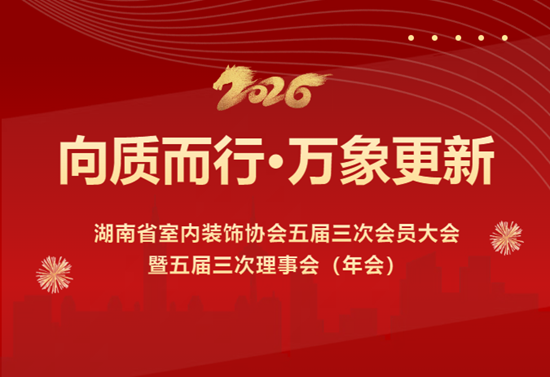 年味漸濃,盛典啟幕!1月28日下午,以“向質(zhì)而行·萬象更新”為主題的湖南省室內(nèi)裝飾協(xié)會(huì)五屆三次會(huì)員大會(huì)暨五屆三次理事會(huì)(年會(huì)),在長(zhǎng)沙華天大酒店湖南廳盛大啟幕。