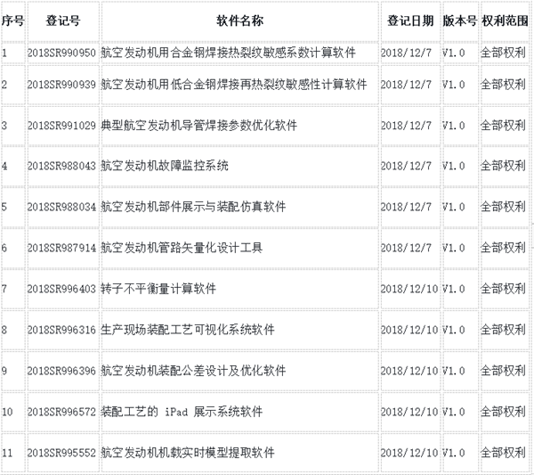 從官方渠道獲悉,航天智造(廈門(mén))科技研究院已經(jīng)獲得的如下17項(xiàng)目航空軟件系統(tǒng)完整的知識(shí)產(chǎn)權(quán)授權(quán)(航天智造相關(guān)軟件登記信息)