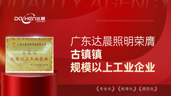 您當(dāng)前位置:良品樂(lè)購(gòu) >> 中國(guó)十大太陽(yáng)能品牌 >> 太陽(yáng)能資訊 >>匠心鑄光 實(shí)力加冕丨達(dá)晨照明榮膺“古鎮(zhèn)鎮(zhèn)規(guī)模以上工業(yè)企業(yè)”