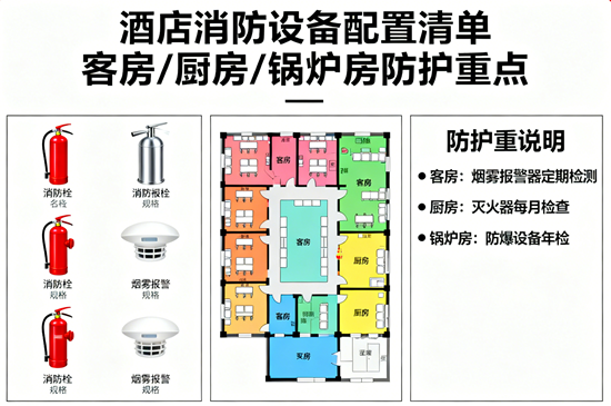 酒店消防設(shè)備配置清單:客房/廚房/鍋爐房防護(hù)重點(diǎn)