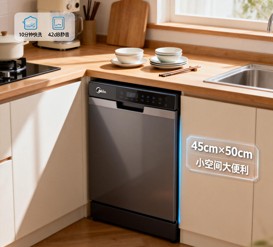 空間友好:尺寸通常寬45-50cm、深50-55cm,嵌入式安裝不占臺面(如美的Mini系列僅45cm寬)。